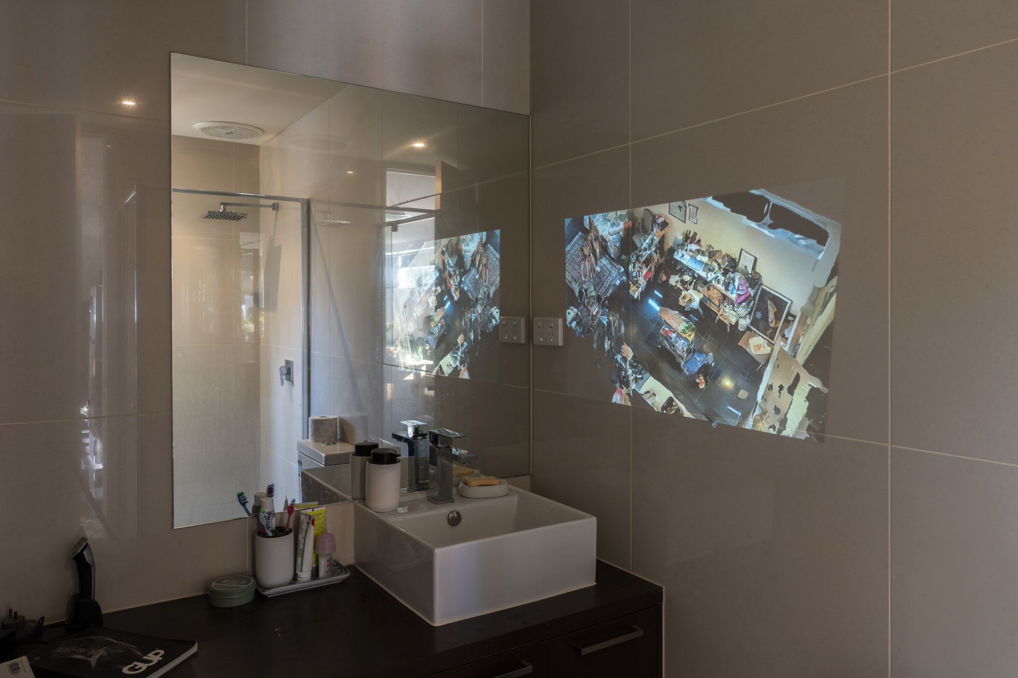 Floor plan, Eric Jong, single channel video projection onto bathroom tiles, 1 minute, 2024.